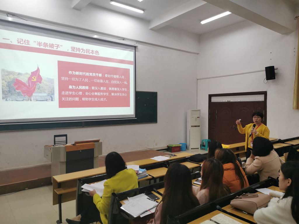 活动中,彭长江同志上了一堂生动的微党课,她带领教职工重温“半条被子”的故事,要求大家记住“半条被子”,弘扬“半条被子”精神。邱雨晨同志领学习近平总书记在湖南考察时的重要讲话:闯出新路子,展现新作为,李卫和陈艳红两位同志就微党课和习总书记的讲话精神做中心发言,其他党员交流发言。