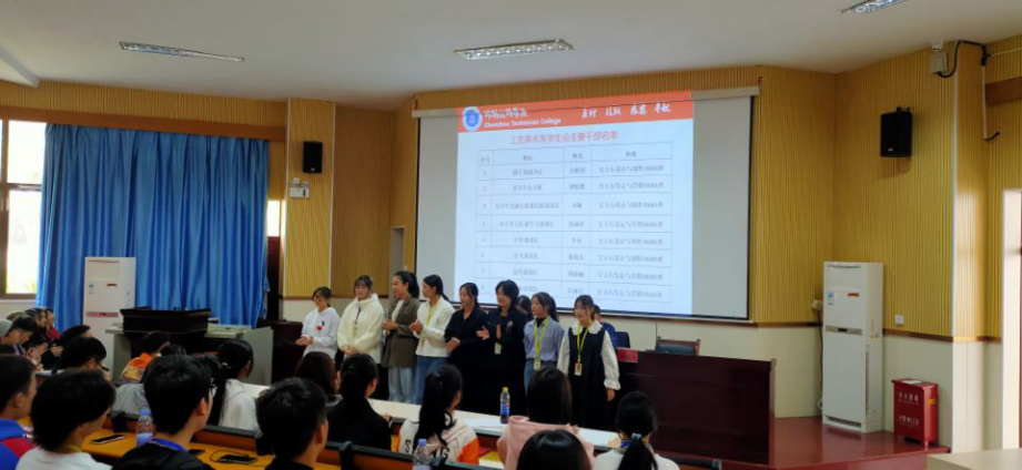 张巧园通报了工艺美术系团学会干部成立情况,随后团学会主要干部和寝室层长纷纷登台亮相,介绍了自己分管的工作内容。张巧园对团学会的各项工作予以了充分的肯定,同时要求全系学生支持、配合好团学会的各项工作,争当优秀系部。