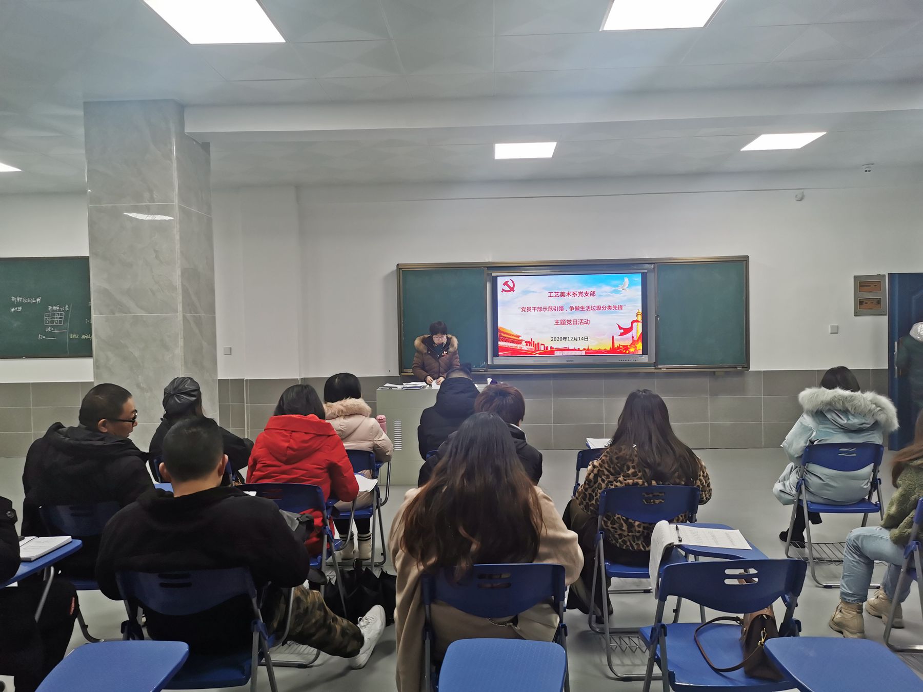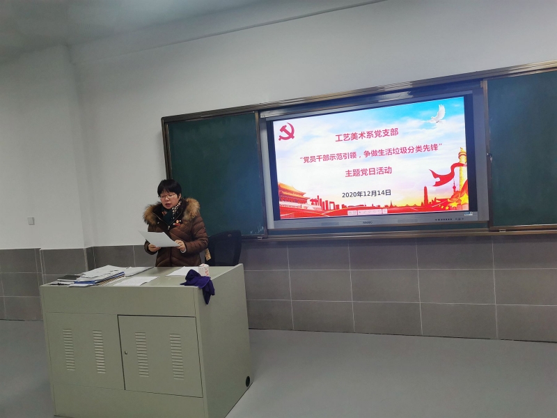 (通讯员 邱雨晨)2020年12月14日下午4点,工艺美术系党支部在实训楼宝玉石鉴定实训室开展"党员干部示范引领,争做生活垃圾分类先锋"主题党日活动。活动由支部书记彭长江主持,全系教职工参加。